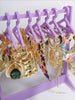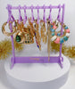 This set includes 8 mini hangers, which can each hold 2 pair of earrings hoop or dangly style earrings.Choose from pink and purple
