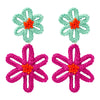 Introducing NOLA STATEMENT EARRINGS, the perfect accessory for a day at the beach. These eye-catching earrings feature a bright and colorful floral design that is sure to make a statement. With their vibrant colors and unique design, these earrings will add a touch of fun and playfulness to any outfit. Elevate your style and brighten up your day with these stunning earrings.