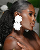 These ROSANNE floral earrings feature plush 3D roses that are extremely lightweight, making them comfortable to wear all day long. The intricate design adds a touch of elegance to any outfit. Expertly crafted, these earrings are the perfect statement piece for any fashion-forward individual.