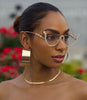 *MODEL PAIRED EARRINGS WITH HOLLYWOOD GLASSES AND HERRING BONE NECKLACE*